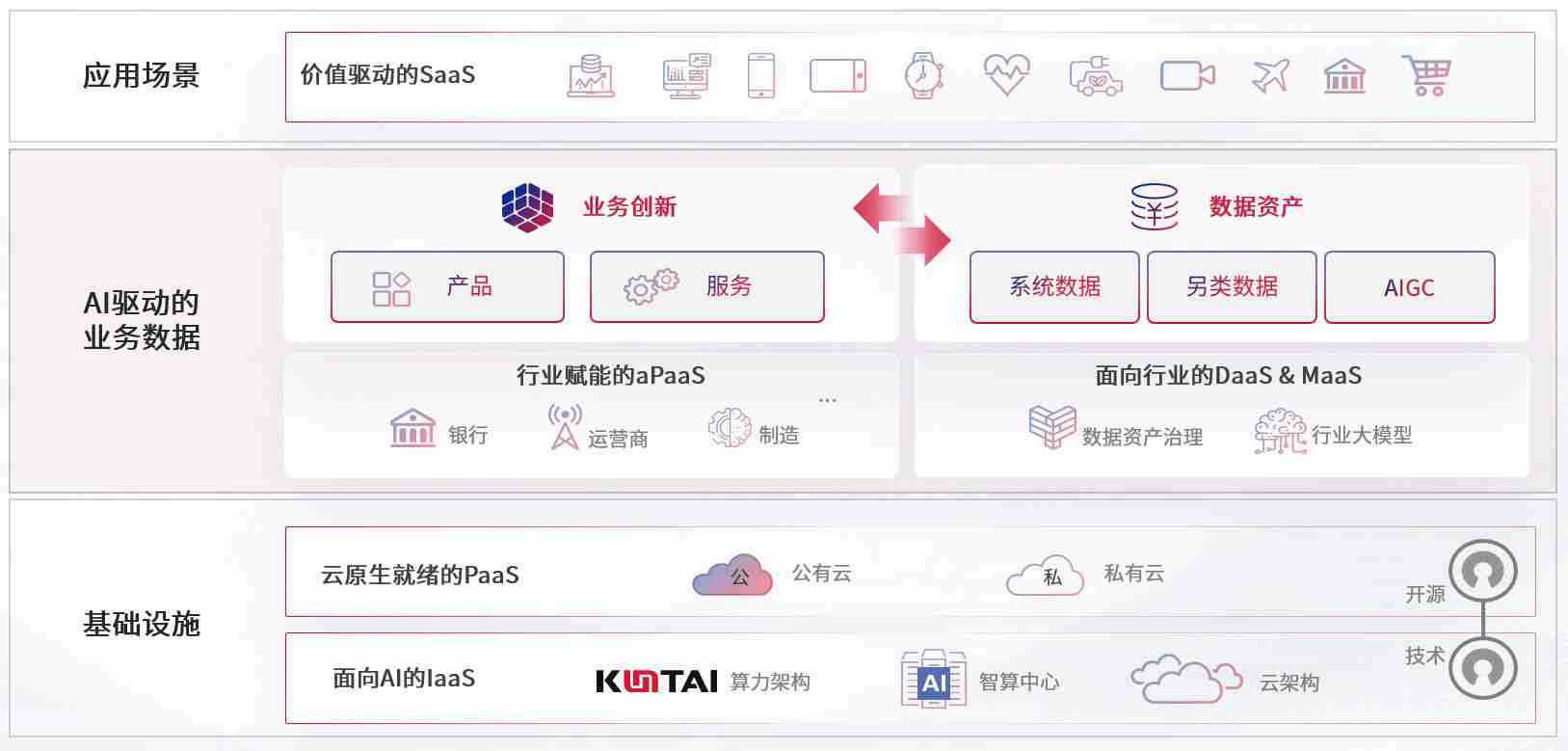 数字时代,,围绕企业数字化转型的关键要素,,,,98堂论坛数码开创性的提出数云融合战略和技术体系框架,,着力在云原生、、、、数字原生、、、、AI原生和信创产业上架构产品和服务能力,,,,为处在不同数字化转型阶段的快消零售、、汽车、、金融、、、医疗、、、、政企、、、教育、、、运营商等行业客户提供泛在的敏捷IT能力和融合的数据驱动能力,,,,构建跨界融合创新的数字业务场景和新业务模式,,,助力企业级客户建立面向未来的核心能力和竞争优势,,,,全面推动社会的数字化、、智能化转型升级。。。